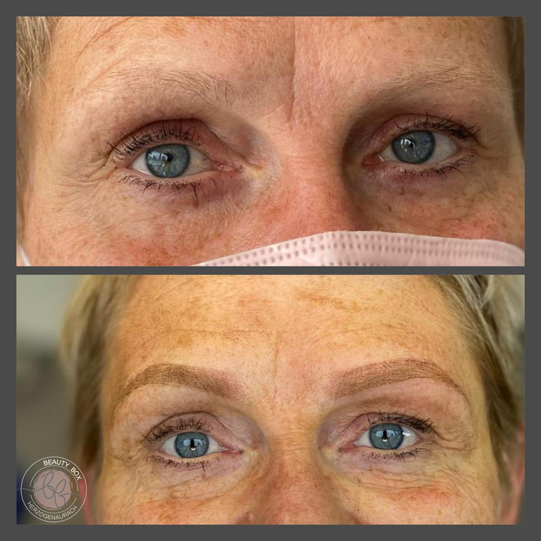 Bei Ombre Brows (ein Verlauf von Hell nach Dunkel) werden die Brauen mit einer Ombre-Schattierung oberflächlich pigmentiert. Die Augenbrauen sehen gleichmäßig und perfekt konturiert aus ohne aufdringlich zu wirken. Die Behandlung ist ideal, wenn Sie volle Brauen mit einem natürlichen Look wollen.